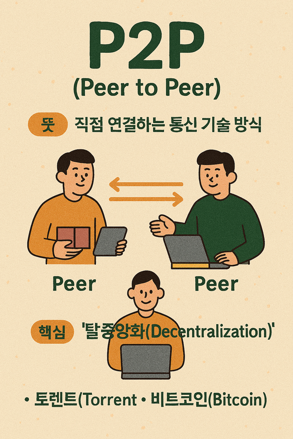 2. P2P (Peer to Peer) 뜻: '직접 연결'이 핵심