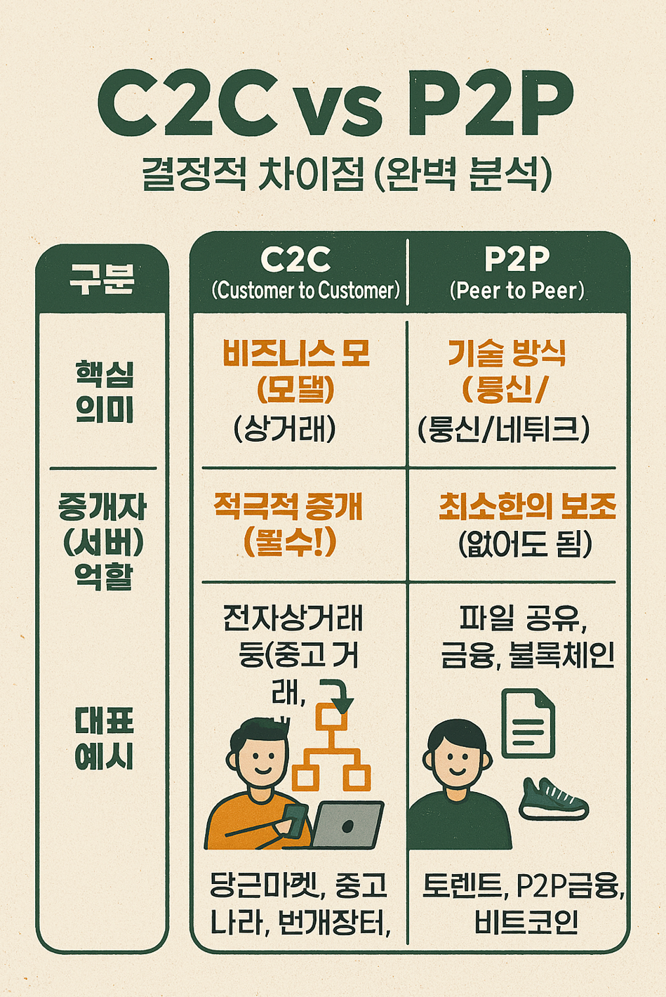 3. C2C vs P2P 결정적 차이점 (완벽 분석)