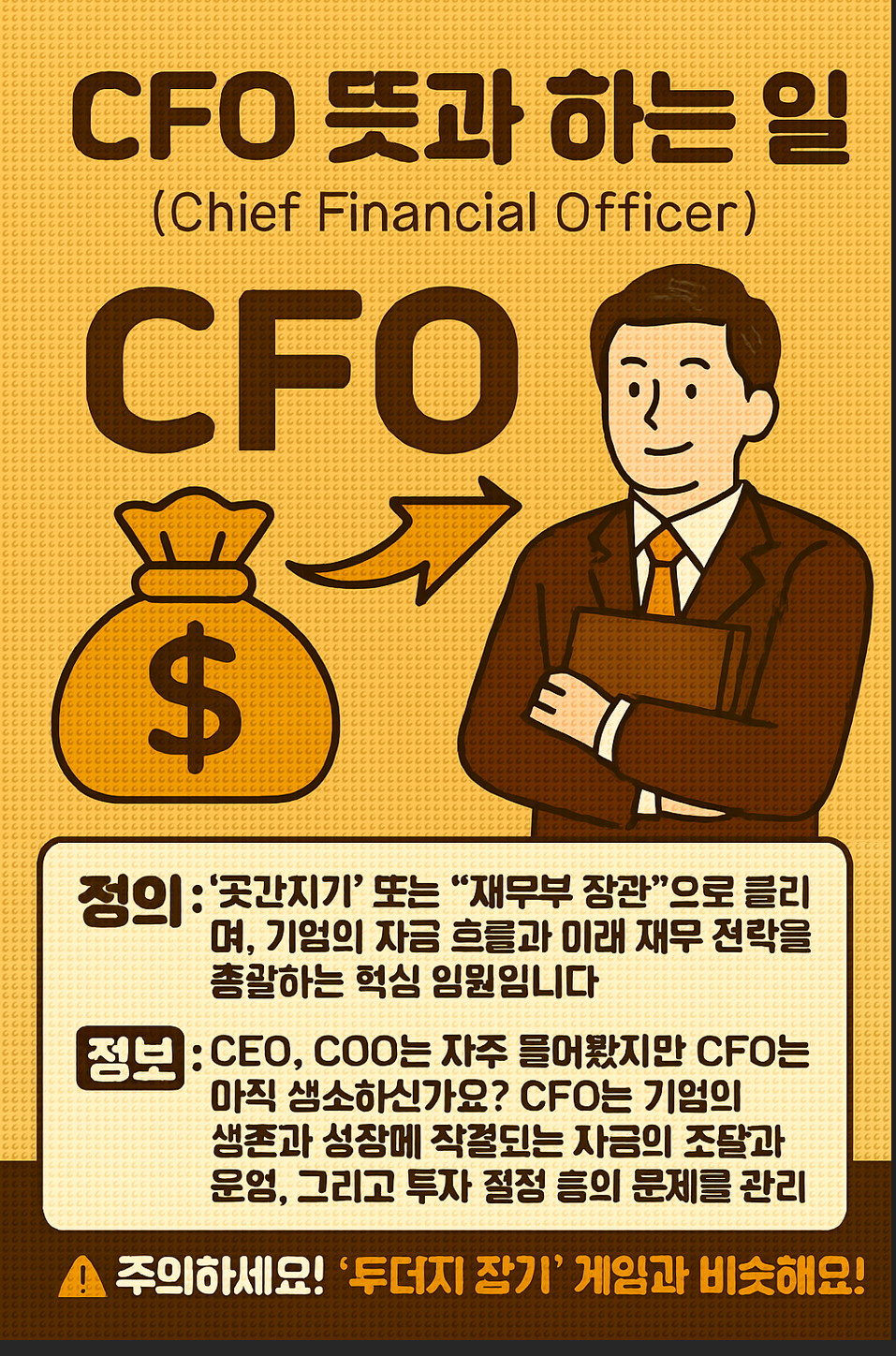 이번 글에서는 CFO가 정확히 무엇을 하는 사람인지, 그리고 기업에서 얼마나 중요한 역할을 하는지 명확하게 정리해 드리겠습니다!