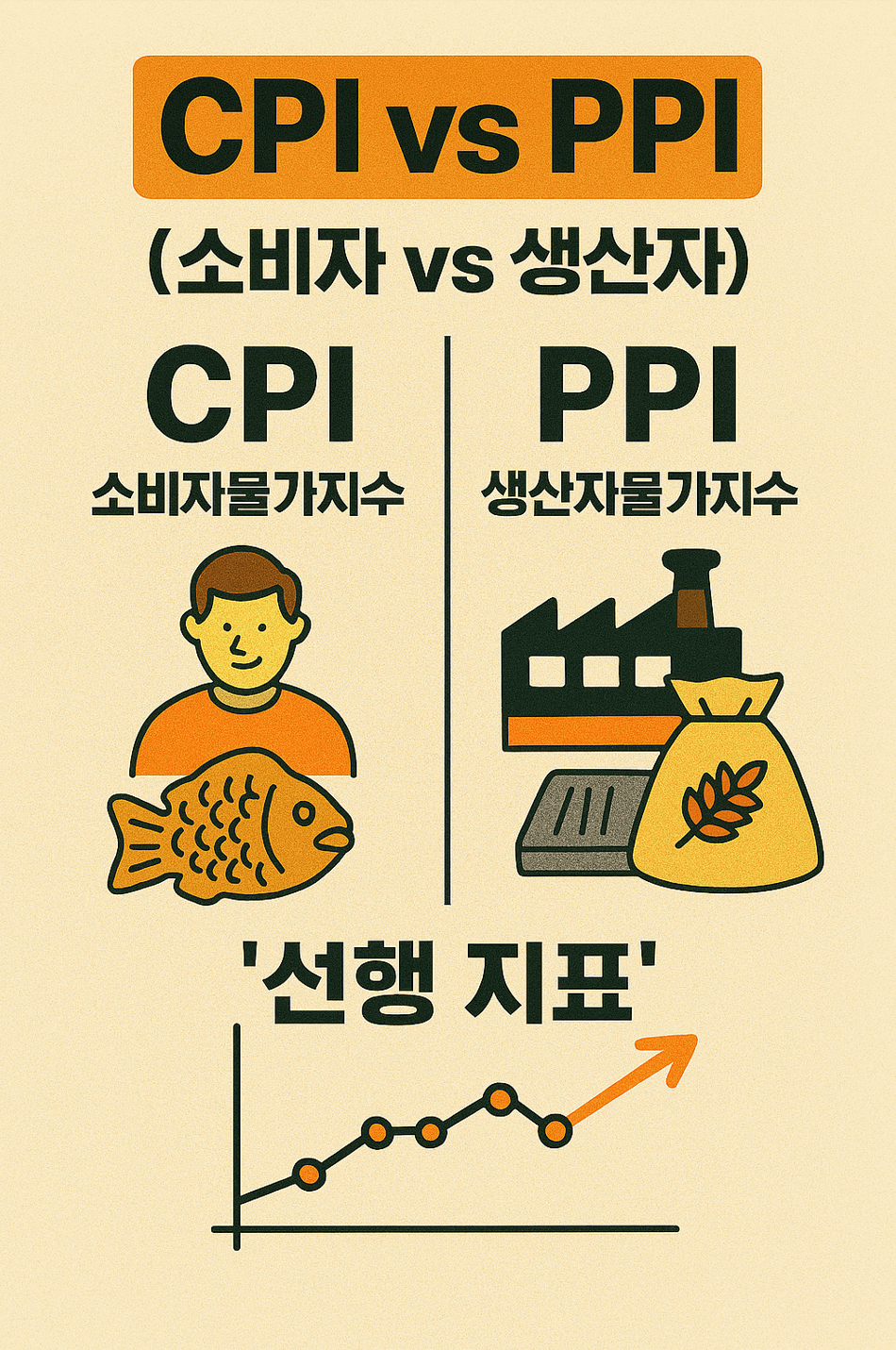 | PPI | 생산자물가지수 (Producer) | '생산자(공장)'가 사는 '원자재/중간재' 가격 (밀가루, 철판) |