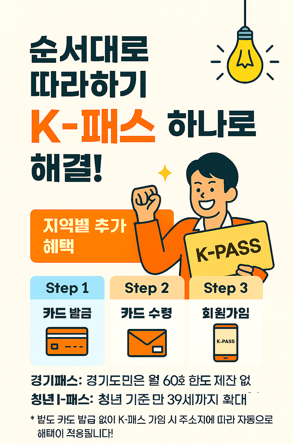 * 별도 카드 발급 없이 K-패스 가입 시 주소지에 따라 자동으로 혜택이 적용됩니다!