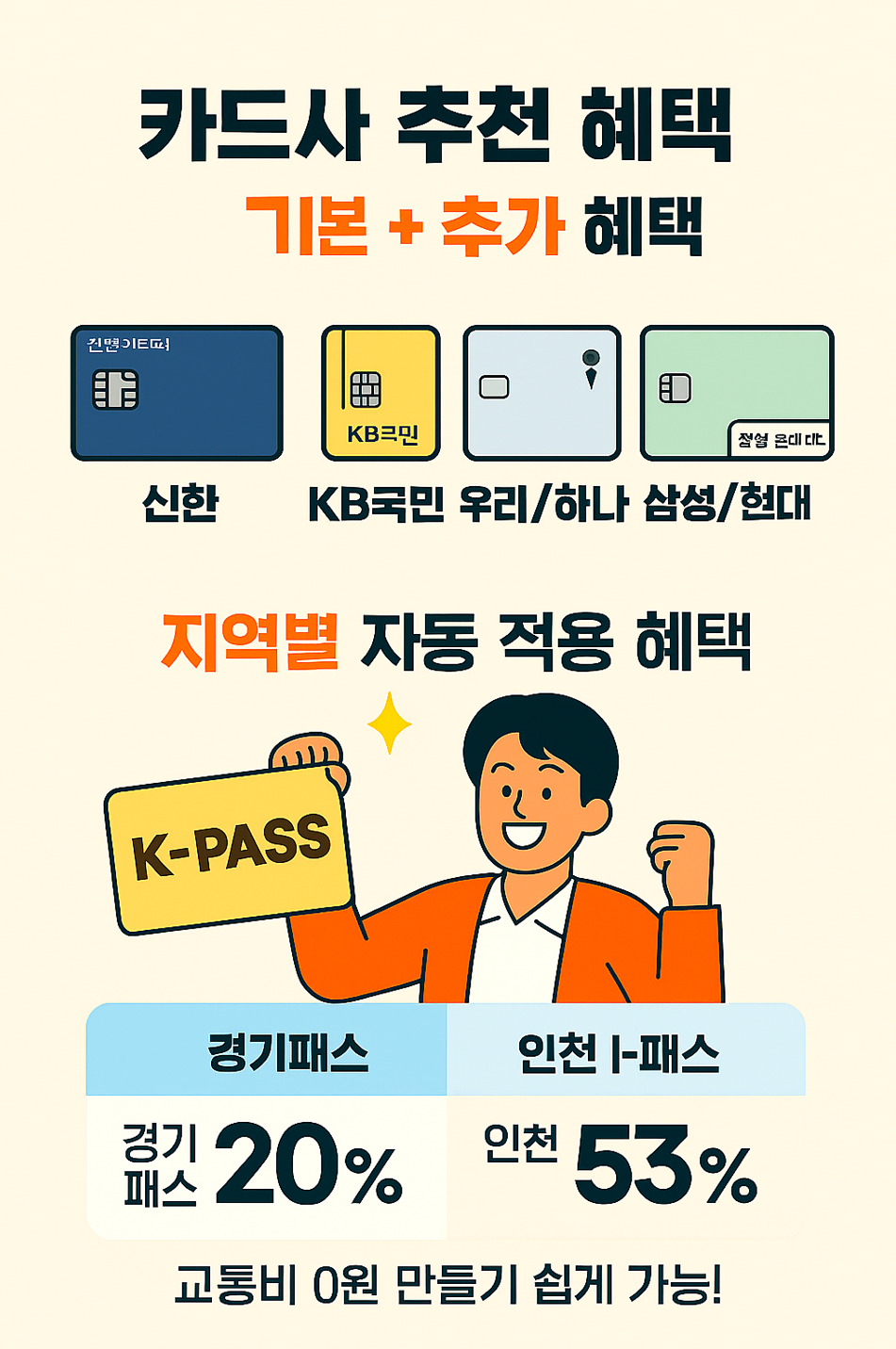 - 신한카드: 대중교통 10% 추가 할인, 간편결제 할인 등 생활 밀착형 혜택이 강점입니다.