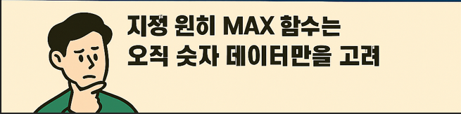 MAX 함수는 오직 숫자 데이터만을 고려합니다. 텍스트, 논리값(TRUE/FALSE), 또는 빈 셀이 포함되어 있더라도 이들은 모두 무시하고, 숫자 데이터 중에서 가장 큰 값을 골라냅니다.