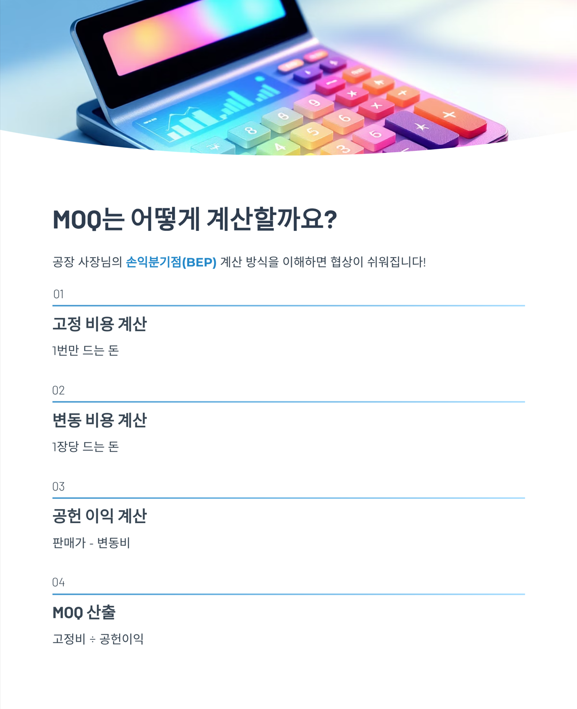4. MOQ 계산 (손익분기점):