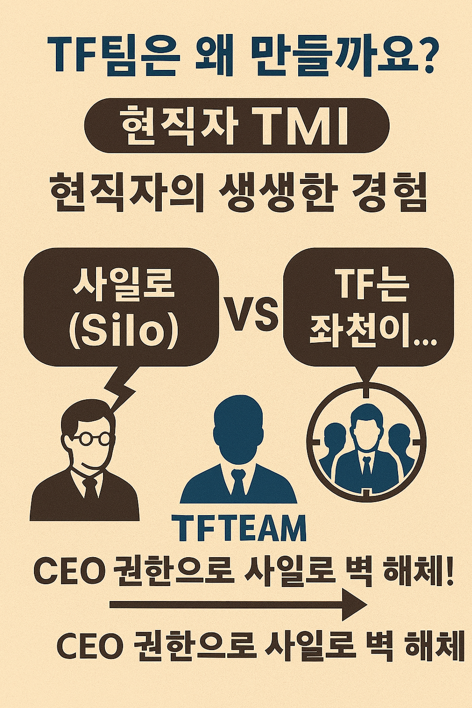 "TF팀? 그거 쇼하다 끝나는 거 아니야?" 맞습니다. 실제로 제가 컨설팅한 많은 TF팀이 흐지부지되곤 했습니다. TF팀은 '대박' 아니면 '쪽박', 그야말로 양날의 검입니다. 그 차이는 어디서 올까요?